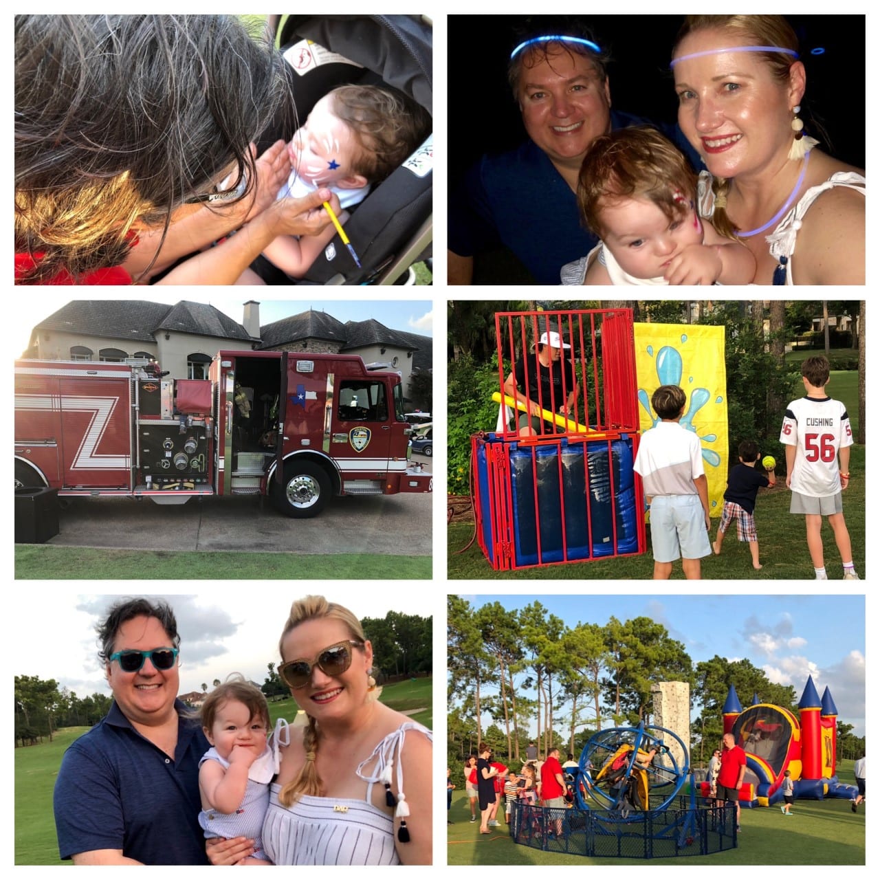 I love Independence Day. It‘s a time when Americans remember the birth of the United States of America, pay respect to our forefathers, and remember our great patriots and the amazing sacrifices they continue to make to keep our country home of the free and the brave. This year was extra special as we got to enjoy July 4th with our +1, as we like to refer to him as “TOS – The Boss!” Life is truly so much more fulfilling with our little guy in the picture. This year we joined the festivities at the Royal Oaks Country Club and it did not disappoint! The club actually set a record year in attendance with over 400 patrons. On the great lawn, they had food stations, a cash bar, table set-ups, plus exciting games and rides for the kiddos. And my favorite is face painting because I have limited time in my son’s life to dress him up like my little doll! They even had an area fire department bring their big red truck, which was a true hit for the kiddos.